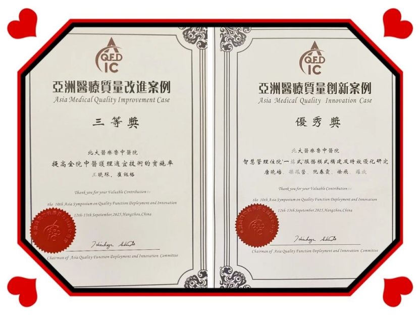在这场高规格赛事中,北大医疗鲁中医院团队凭借临床实践与创新方案脱颖而出,一举斩获两项荣誉:品管圈项目《提高全院中医护理适宜技术的实施率》获三等奖,《智慧管理住院“一站式”服务模式构建及时效优化研究》获优秀奖。这份成绩不仅是对项目的国际认可,更彰显医院在医疗质量改进领域的专业深度与创新活力。