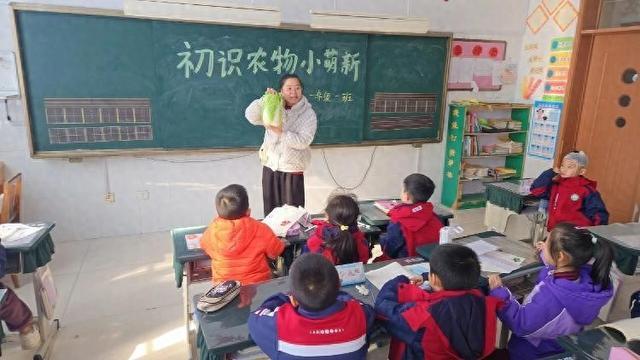 一年级的小萌新们率先开启“初识农物”模式!劳动课上,玉米棒、新鲜萝卜、白菜被搬到课堂中央,老师细致讲解作物外形特征,孩子们听得目不转睛。随后的“看实物猜名字”抢答环节,小手纷纷举起,答对后的欢呼声响彻教室。